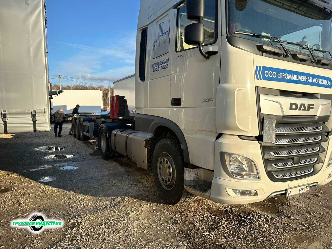 Отгрузка сцепки тягач DAF 4x2 и облегченного контейнеровоза Тонар К3-20 в Карелию.